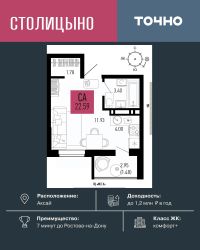 ЖК ''Столицыно'' — это самый масштабный проект ГК ТОЧНО в Ростовской области. На территории 42 га возводятся 18 домов переменной этажности, школа на 1300 мест, два детских сада на 600 мест, медицинский центр, парк 8,4 га и фитнес-центр с бассейном. Проект возводится по концепции ''город в городе'', где все необходимое для комфортной жизни будет в шаговой доступности.