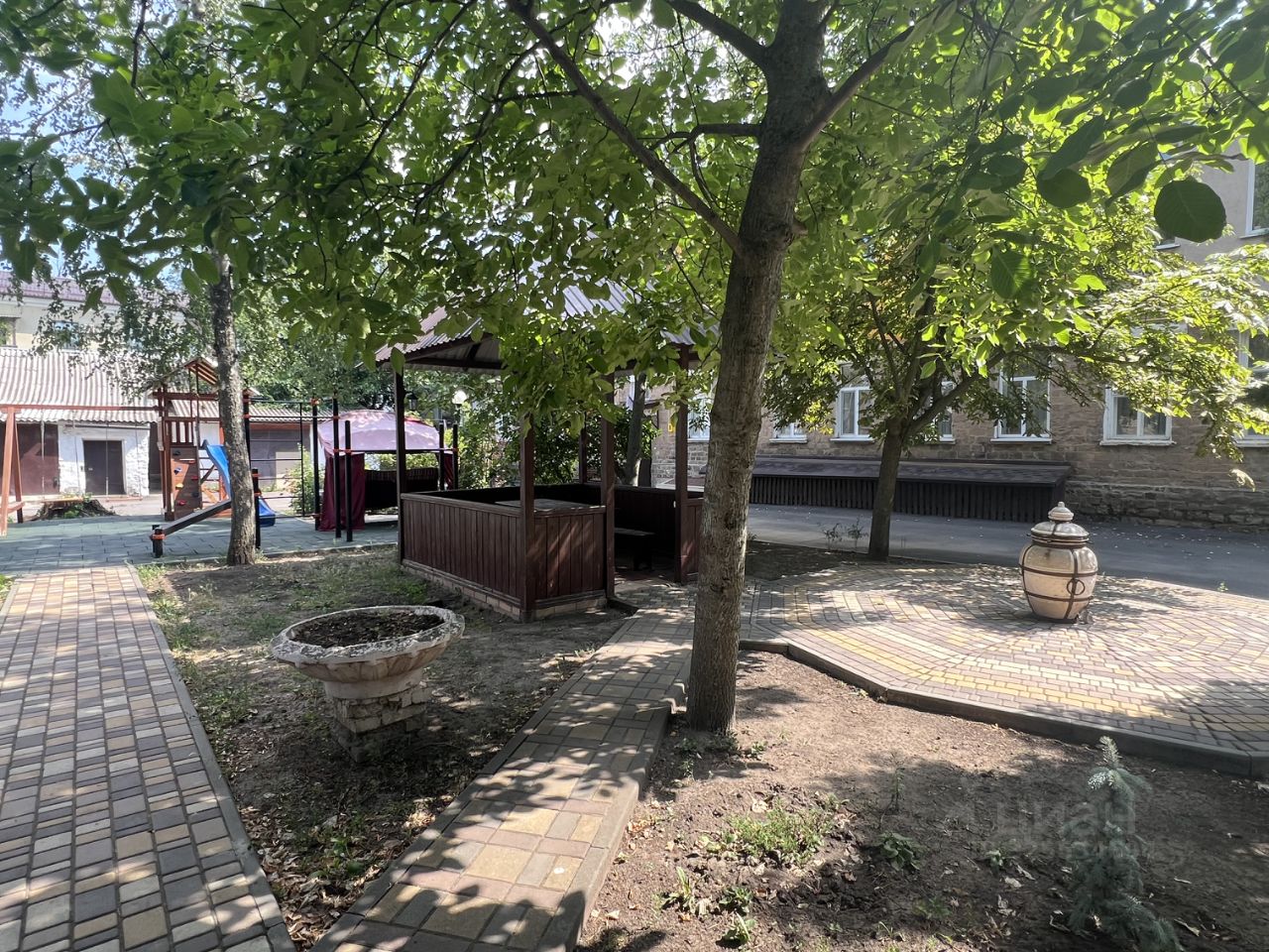 Закрытый благоустроенный двор,много зелени, спорт, детская площадка, зона барбекю, беседка.