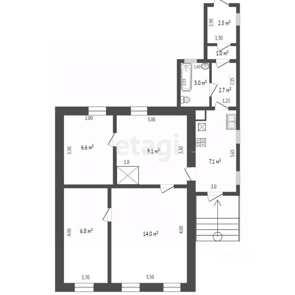 Общая площадь52,8 м2